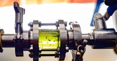 As phytocannabinoids are higher molecular weight, thermolabile compounds, the application of high vacuum distillation methods, such as molecular distillation, are used to isolate/separate/purify components without thermally degrading them. A molecular distillation unit has a feed vessel (Figure 2) that introduces miscella into the unit, whereupon the wipers spread an even coating as a thin film on the heated walls of the unit, thereby increasing the surface area. Specific and proprietary wipers can produce a thin layer of extract that’s 0.05 – 0.1 mm in thickness, significantly enhancing the evaporation surface area. The speed of the wiper blades’ rotation can be optimized and controlled to ensure uniform flow of the miscella for a rapid and efficient evaporation.