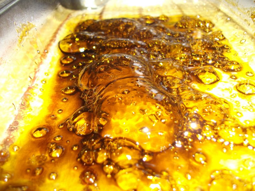 As solvent is purged, bubbles form in the concentrate (aka “muffins”); when the bubbling ceases, the solvent is considered removed. Analytical testing must confirm this, of course. Depending on solvent(s), oil quality, equipment, process, and desired end product, the time required can range widely from a single hour to five days. Extractors often flip the thin layers of concentrate at set intervals (e.g., 12 hours) to ensure full purging. Stirring or whipping concentrate should be avoided, however, as this can trap solvent.